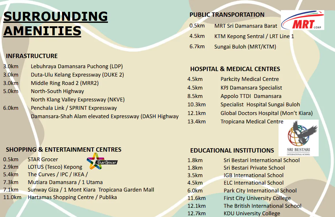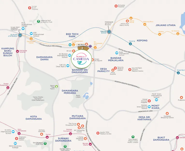 Residensi Kamelia is a freehold serviced apartment situated in Bandar Sri Damansara, Kepong. The development consists of a single 26-storey tower with total 602 units. It is located about 500 meters from the MRT Sri Damansara Barat station, offering excellent public transport accessibility. Additionally, it is only 5 minutes from Star Grocer and 8 minutes from Lotus Kepong Mall.